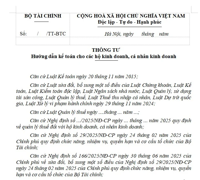 • HƯỚNG DẪN KẾ TOÁN CHO HỘ KINH DOANH, CÁ NHÂN KINH DOANH THEO DỰ THẢO MỚI NHẤT